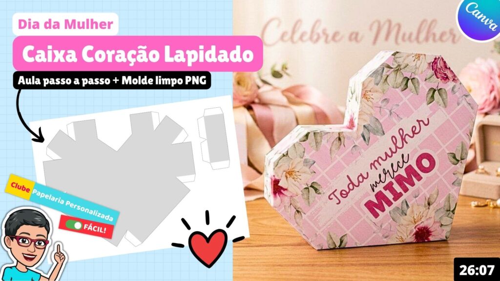Oi, artesã! Hoje trouxe um presente especial para você: o arquivo pronto da nossa Caixa Coração Lapidado. Ela é perfeita para quem busca um mimo para cliente que seja sofisticado e fácil de montar apenas com a tesoura. Se você precisa de uma caixa para imprimir mimo que encante no primeiro olhar, este molde é para você.