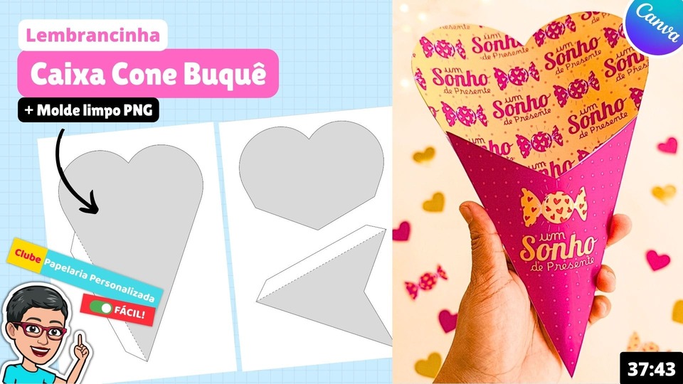 Aula passo a passo + Molde limpo em PNG para membros do Clube Papelaria Personalizada Fácil